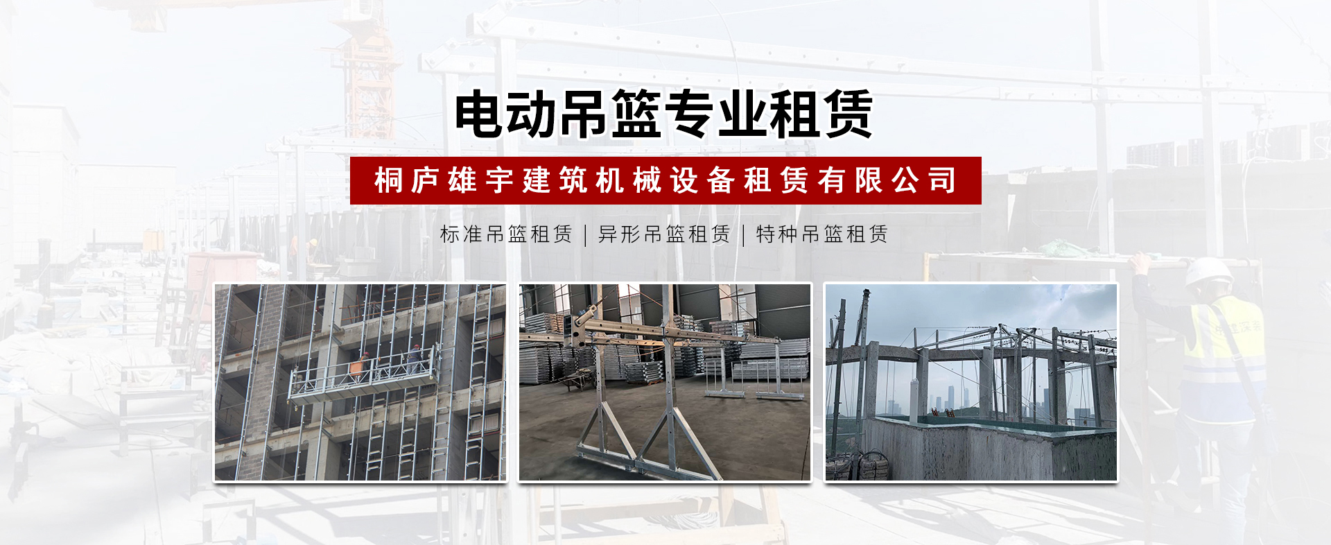 桐廬雄宇建筑機(jī)械設(shè)備租賃有限公司是一家專業(yè)從事吊籃租賃業(yè)務(wù)的公司,本公司擁有普通電動(dòng)吊籃以及其他專用吊籃設(shè)備。公司自成立以來(lái),承蒙業(yè)內(nèi)同仁已經(jīng)各界朋友的關(guān)愛與支持,始終秉承"以客戶為根本,以信譽(yù)求發(fā)展"的經(jīng)營(yíng)理念,堅(jiān)持"精心管理,優(yōu)質(zhì)服務(wù)"的服務(wù)宗旨,多年以來(lái)...